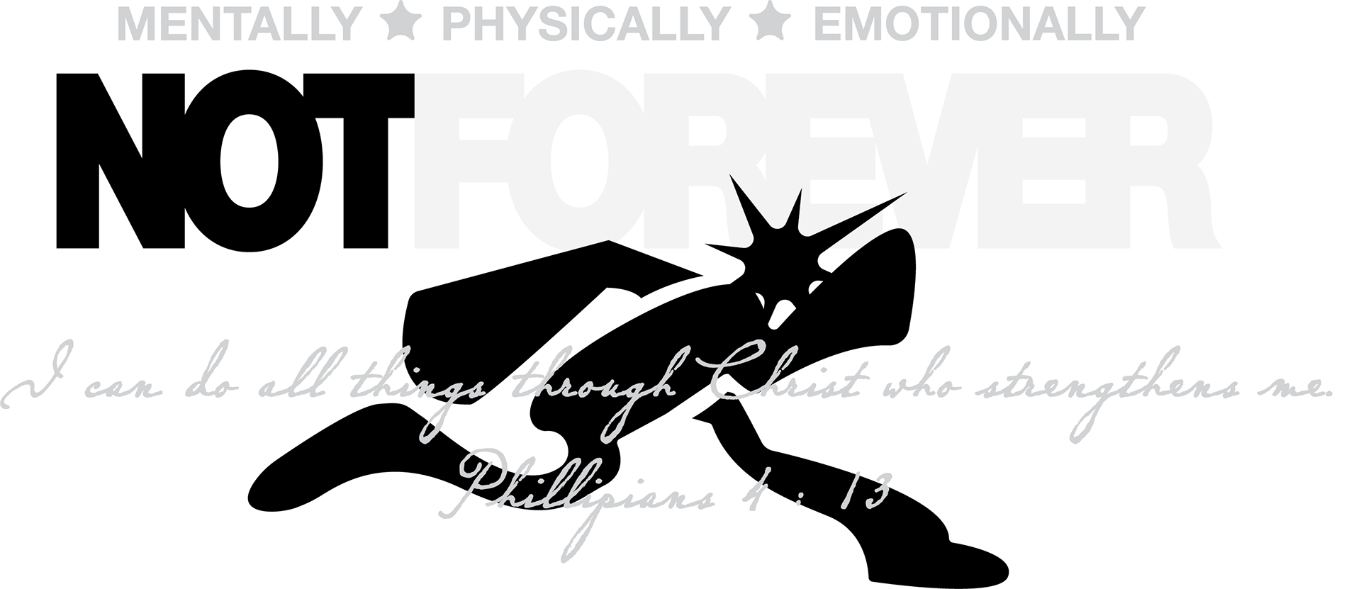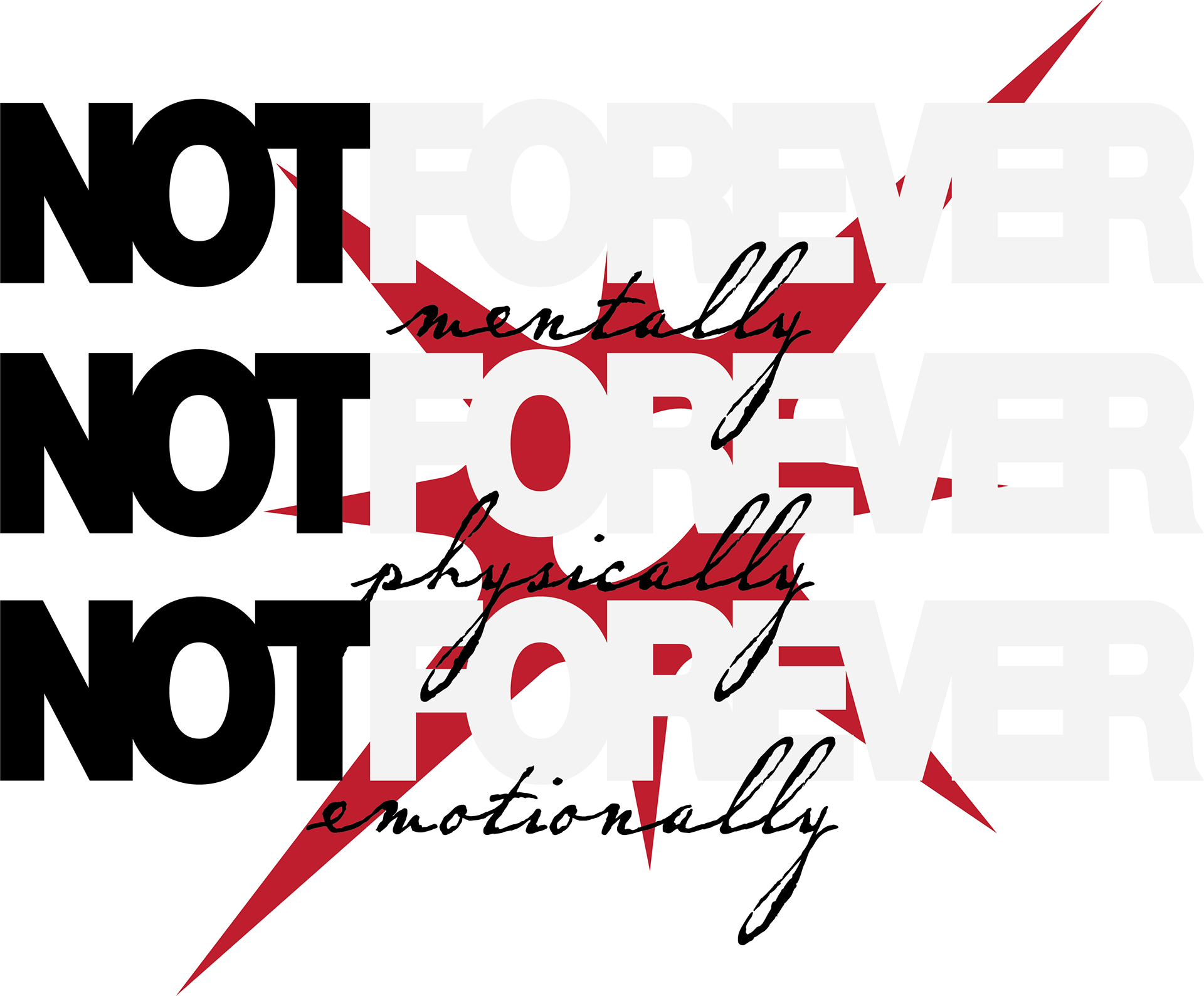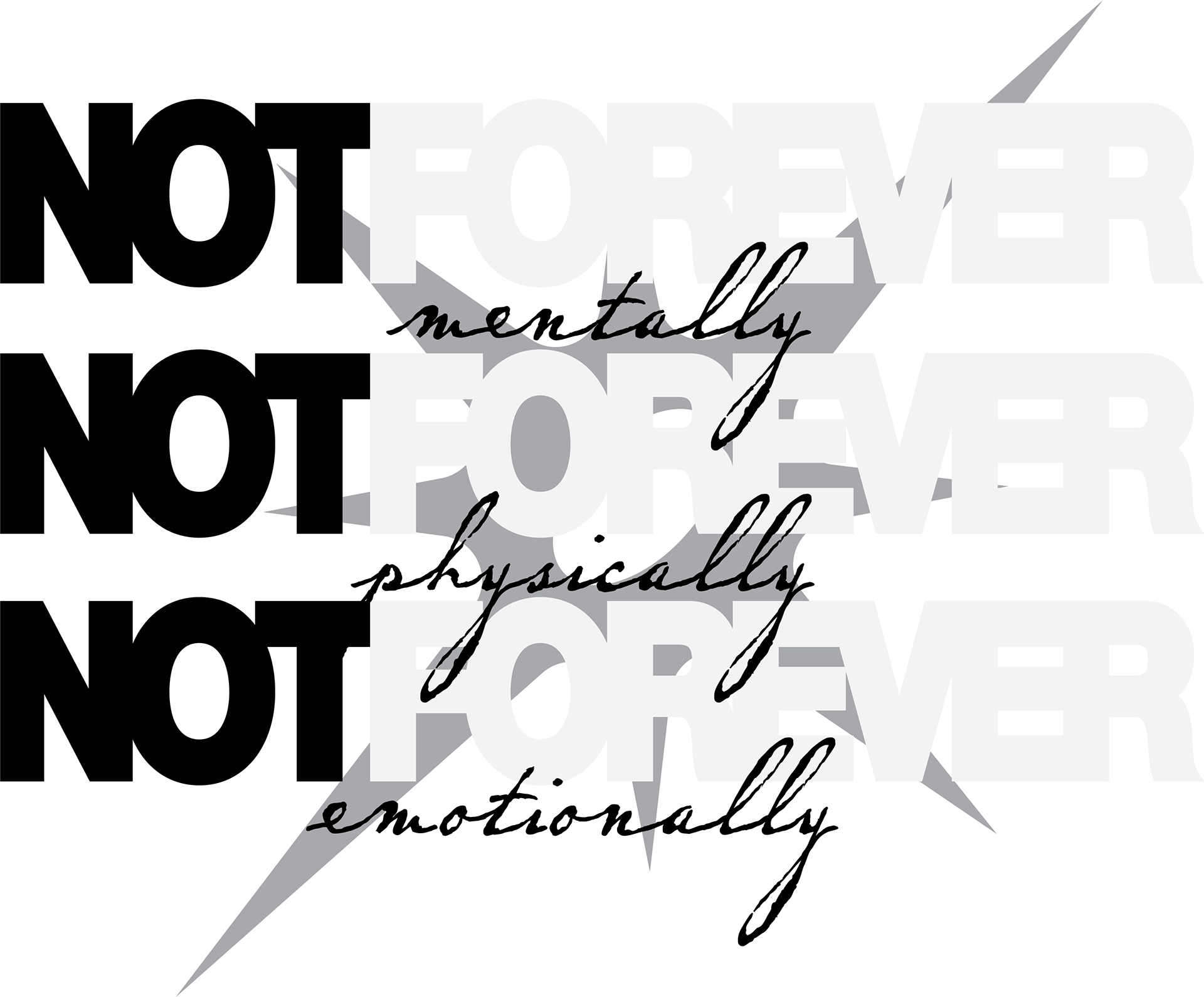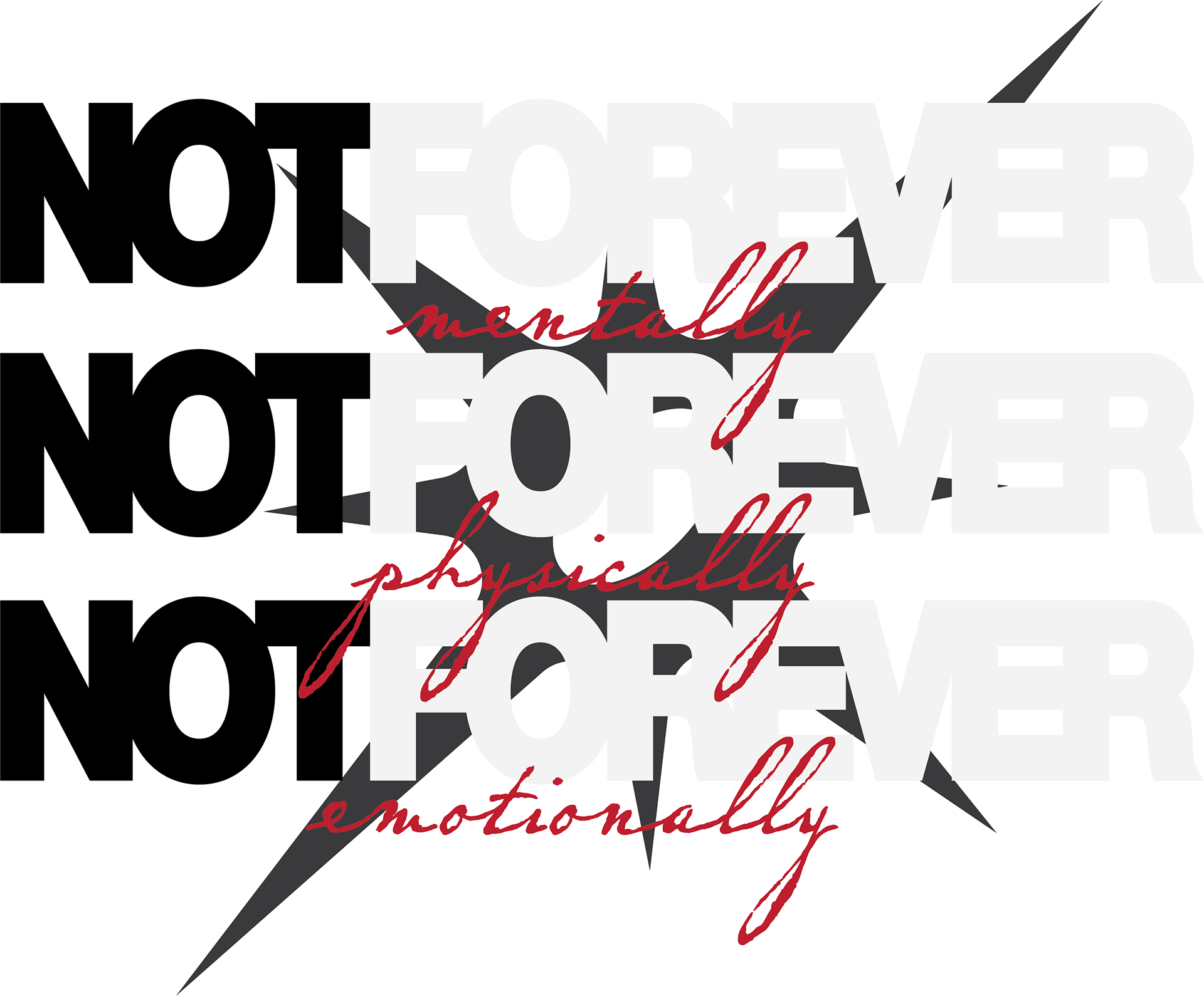 I was commissioned in late 2025 to create multiple graphics for an athletic running club. I was asked to create graphics that represent their motto, "NotForever: mentally, physically, emotionally." This motto is to explain that not everything lasts forever, the highs or the lows. The client asked for an industrial, grungy look for all of the designs. I created 2 waves of designs so that they would have multiple designs for future products.